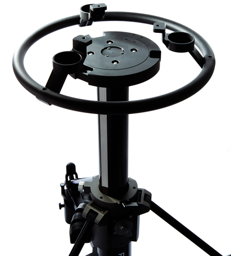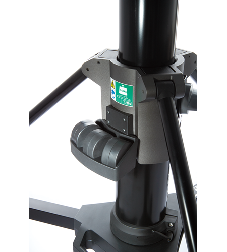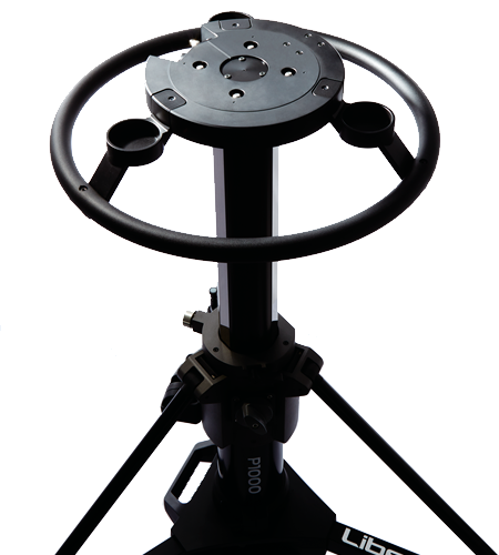 Conjunto de cabezal QH3 (150 mm) y pedestal P1000. Capacidad de carga: 47 kg; peso: 39 kg; altura: 91,5 – 173 cm.