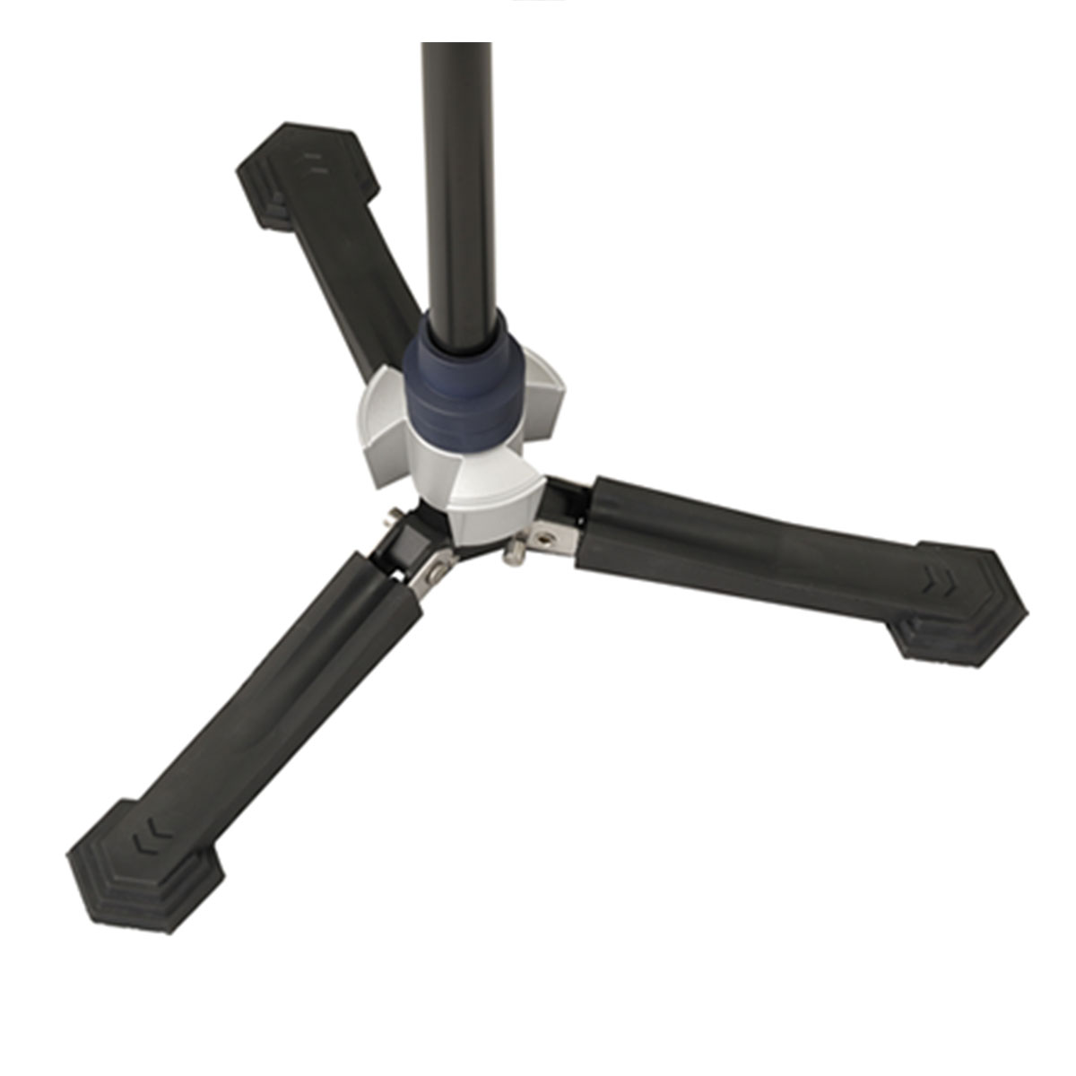 El bloqueo y desbloqueo del trípode se realiza pisando el pedal con el pie: con una sola pisada, bloqueas el monopié en posición autónoma o lo devuelves al modo de movimiento libre de la rótula en la base. El modo de pie libre le deja las manos libres y le permite dedicarse por completo a ajustar el equipo entre tomas, sin tener que apoyar todo el conjunto de la cámara. El cambio de bloqueo se indica con un «clic». Tras cambiar a la posición de grabación libre, entra en acción la rótula de la base del monopié, que garantiza panorámicas e inclinaciones perfectamente fluidas. El monopié es ideal para equipos pequeños o grabaciones en solitario, por ejemplo, entrevistas, documentales, paisajes naturales, eventos sociales, etc.