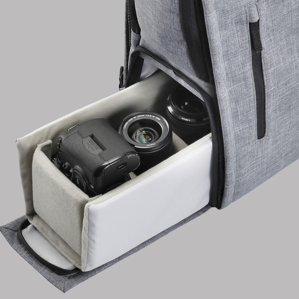 Las mochilas Libec Urban CamBag tienen un diseño moderno y discreto, y cuentan con dos compartimentos independientes separados por un separador extraíble. El compartimento inferior está pensado para guardar una cámara fotográfica o de vídeo y se puede abrir desde el lateral de la mochila para facilitar el acceso. Por supuesto, cuenta con bolsillos interiores de malla para guardar pequeños accesorios (filtros, etc.) y un compartimento para el portátil (hasta 14") en la parte trasera. La variante Urban CamBag 12 ofrece un bolsillo delantero de tamaño A5, mientras que el modelo Urban CamBag 17 dispone de bolsillos delanteros de tamaño A4 y A5. Las correas para transportar el trípode se encuentran en la parte inferior en la versión 12 y en el lateral en la versión 17. Las mochilas se suministran con una funda impermeable; la versión 17 incluye además una correa abdominal desmontable.