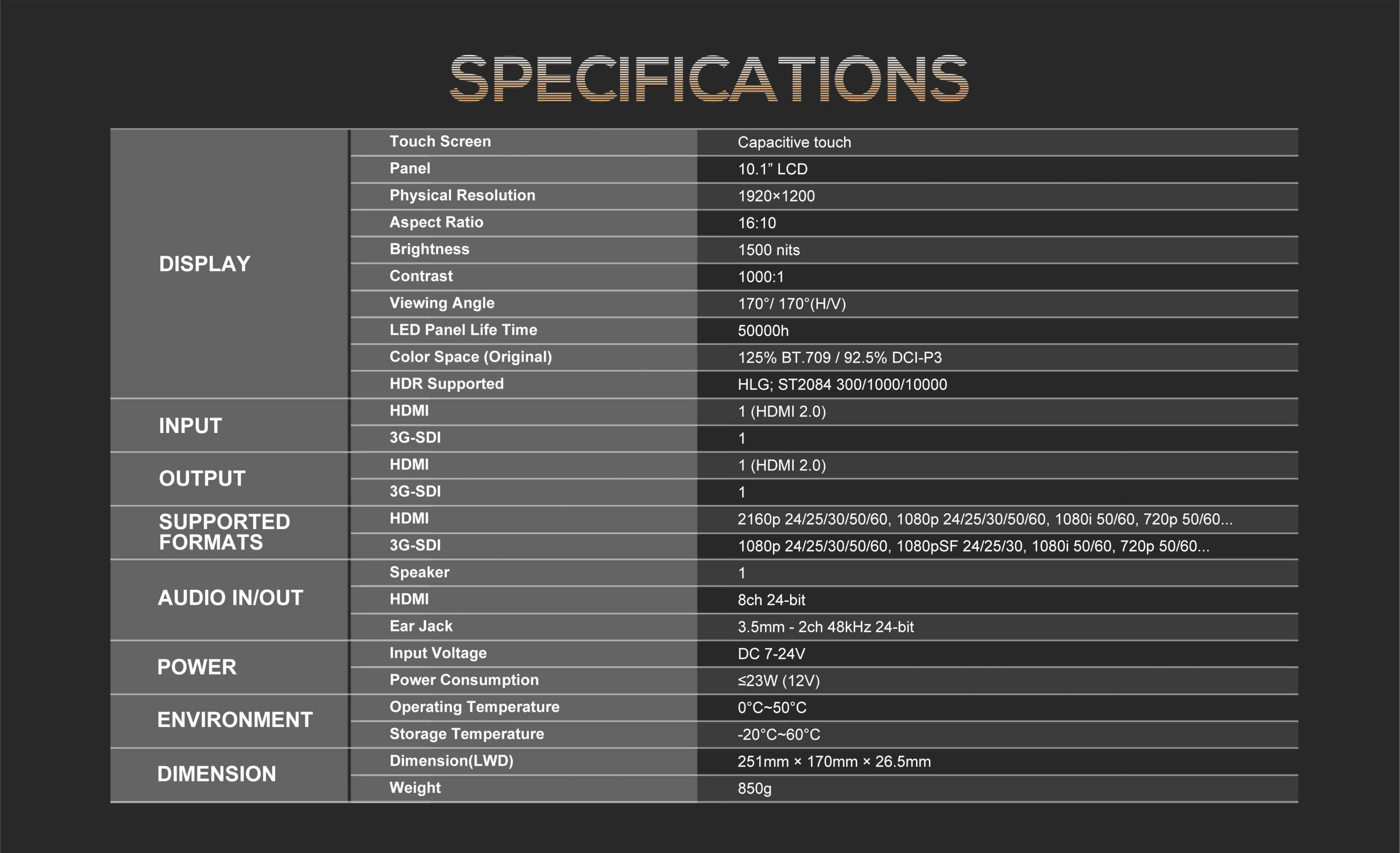 HT10S: monitor táctil de 10,1" con un brillo excepcionalmente alto de 1500 nits y control directo desde la cámara