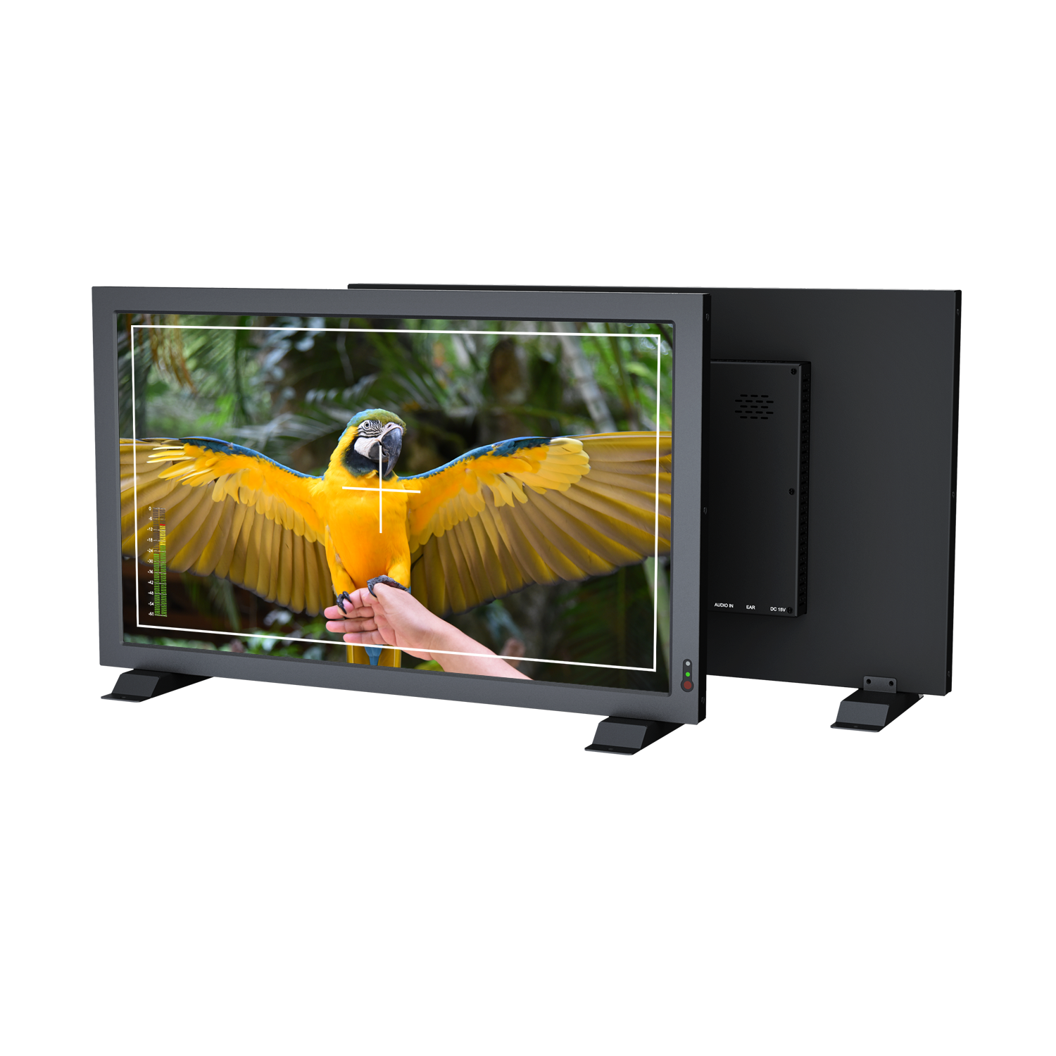 La señal de vídeo de la cámara al televisor en directo suele estar recortada. Este monitor está equipado con las funciones Center Markers y Safety Markers, que permiten ajustar el mejor ángulo de las cámaras en tiempo real para que las tomas más importantes se muestren en el centro del encuadre.