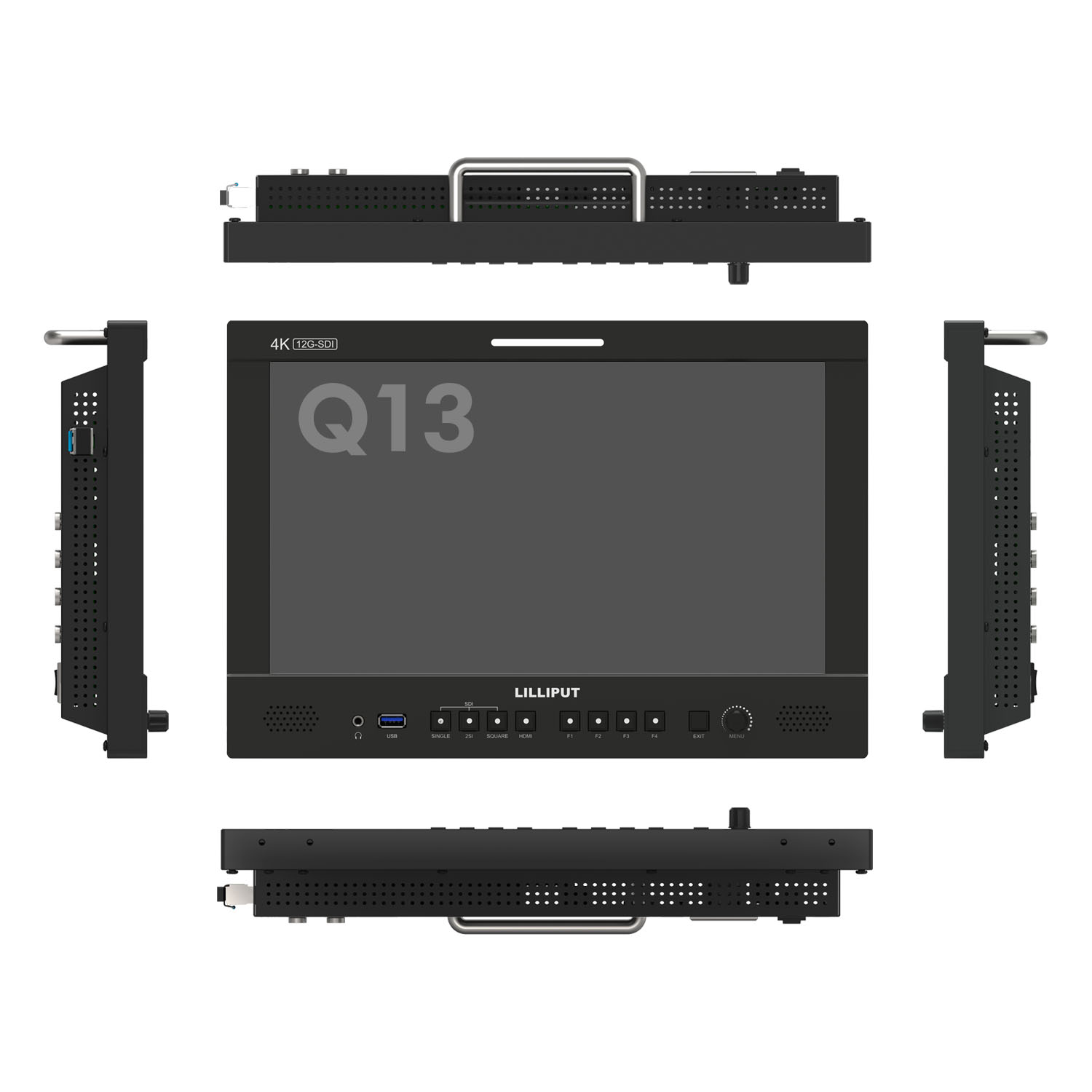 El Lilliput Q13 es un monitor de estudio profesional equipado con funciones y prestaciones para fotógrafos, camarógrafos o videógrafos profesionales. Es compatible con múltiples entradas, con la posibilidad de conectar 12G SDI y 12G-SFP de fibra óptica para una visualización con calidad de emisión.También cuenta con la función Audio Vectoring, que utiliza la forma estándar del gráfico de Lissajous y permite visualizar la profundidad y el equilibrio de la grabación estéreo. El monitor Q13 también se puede conectar a un ordenador o portátil, lo que permite controlarlo a través de aplicaciones.
