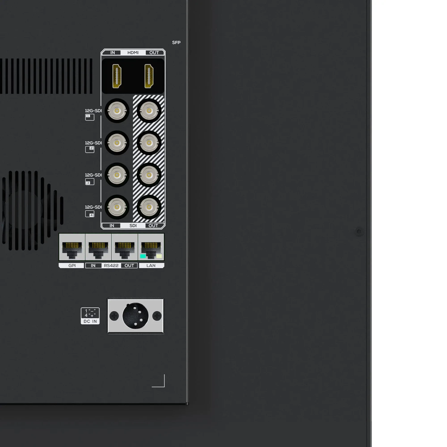 El Lilliput Q43-8K es un monitor de referencia profesional de 43 pulgadas y 4K diseñado para estudios de alta gama, emisiones y producciones en directo. Su panel IPS de 10 bits con una resolución de 3840 × 2160 ofrece un brillo de 400 cd/m², un contraste de 1200:1, un ángulo de visión de 178° y compatibilidad total con HDR (HLG + PQ ST2084 300/1000/10000) con todos los principales formatos de log (SLog2/3, CLog, NLog, ArriLog, JLog). Preparado para 8K: 4× 12G-SDI (Quad-Link 8K60), fibra 12G-SFP+ opcional y HDMI 2.0 (4K60) con bucle completo. El multiview Quad-Split permite visualizar simultáneamente cuatro fuentes independientes, cada una con su propia 3D-LUT, medidores de audio y borde de color para una identificación inmediata. Entre las herramientas avanzadas se incluyen waveform, vectorscope, histograma, false color, zebra, focus peaking, medidor de fase de audio e importación de 3D-LUT de usuario (.cube a través de USB). El control remoto a través de RS422 in/out, GPI o LAN (GUI web + software para PC) permite el encadenamiento y el control centralizado de varias unidades. Se aloja en un elegante chasis de aluminio con soporte VESA 400×400, funciona a 24 V CC (≤77 W) y pesa 14,5 kg. Ideal para coloristas, directores y operadores de mezcladores en directo que trabajan con ARRI Alexa, RED V-Raptor, Sony Venice 8K o Blackmagic URSA 12K.