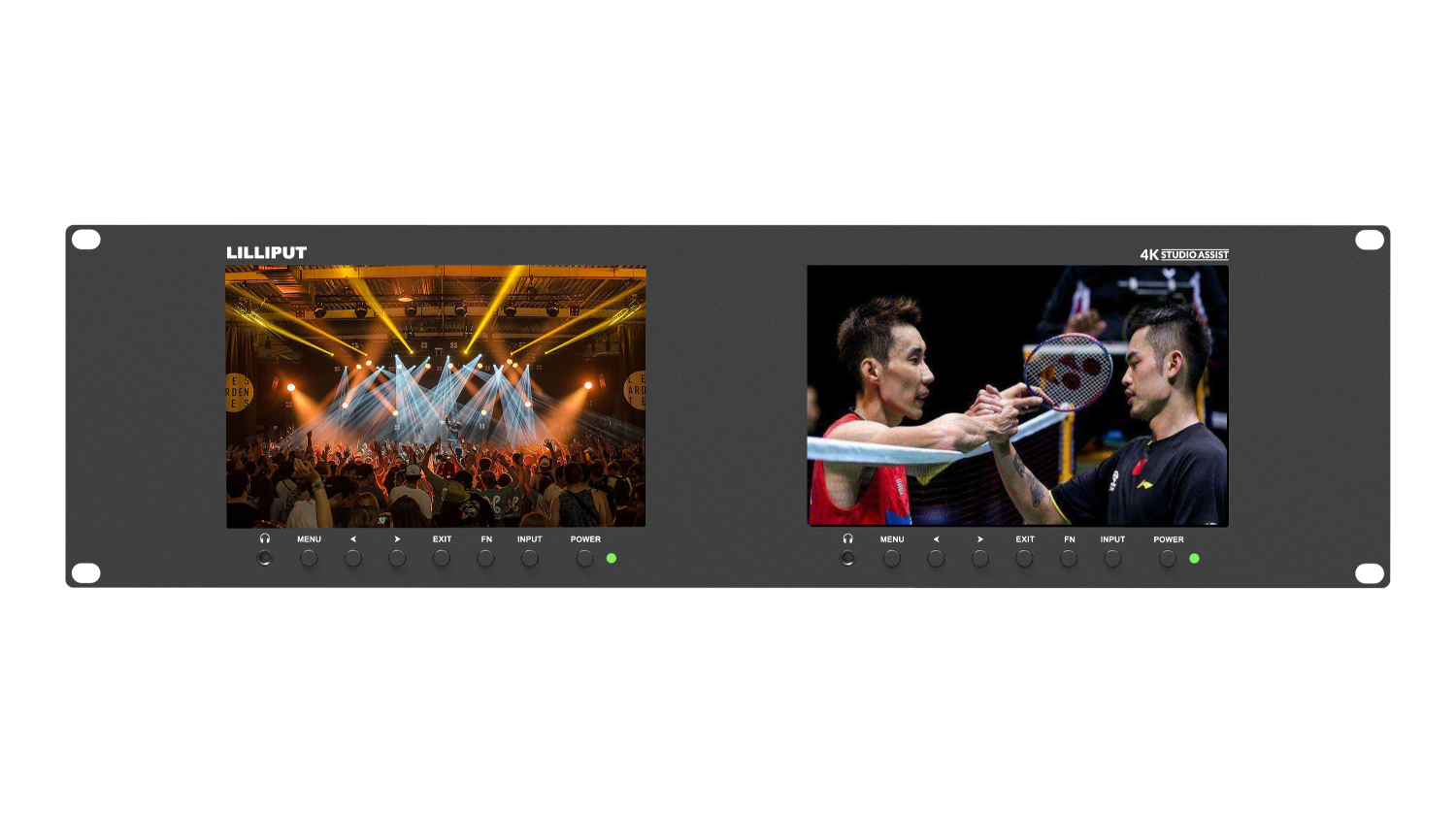 Vea dos cámaras diferentes a la vez en su próxima retransmisión en directo gracias a los monitores duales Lilliput de 7 pulgadas con una resolución de 1920 x 1200 y interfaces 3G-SDI y HDMI, que pueden instalarse en una pared de pantallas o en una unidad móvil de retransmisión gracias a su diseño de 3 RU. Cada monitor dispone de forma independiente de diversas funciones de asistencia de vídeo, como colores falsos, histograma y código de tiempo, lo que permite a los directores de producción analizar la calidad de la imagen de forma fácil y precisa. A través de la entrada USB tipo A se puede cargar una 3D-LUT personalizada para una comparación precisa de los colores.