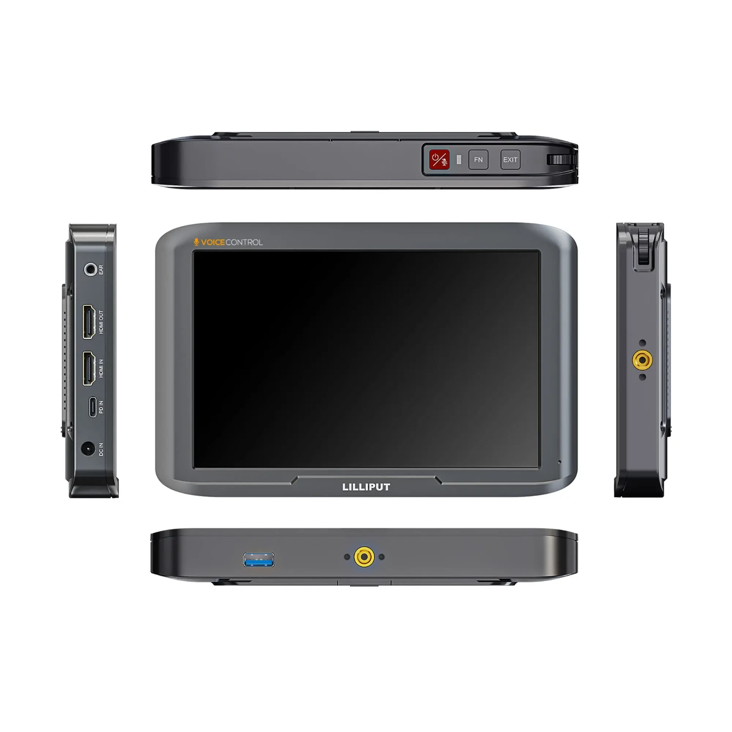 El Lilliput V7 es un monitor HDMI 4K de 7" con resolución 1920×1200, control por voz (forma de onda manos libres, LUT, colores falsos), 450 nits, 100 % BT.709, entrada/salida en bucle HDMI 2.0, alimentación USB-C PD, placa de batería NP-F y herramientas profesionales. Ultradelgado (25 mm), 320 g: ideal para usar con un gimbal, en la mano y en el plató.