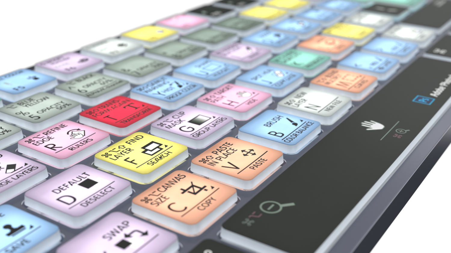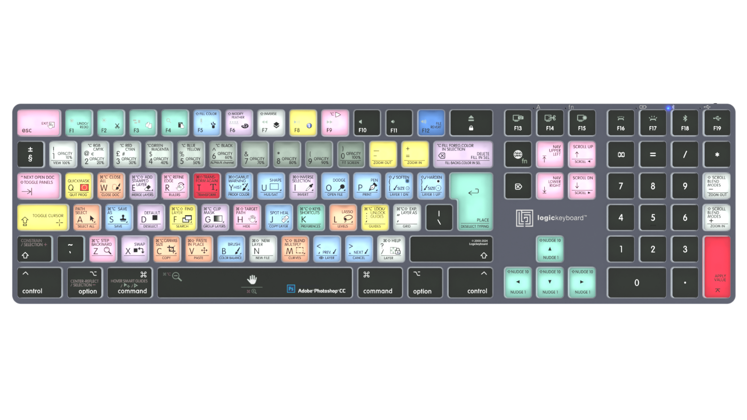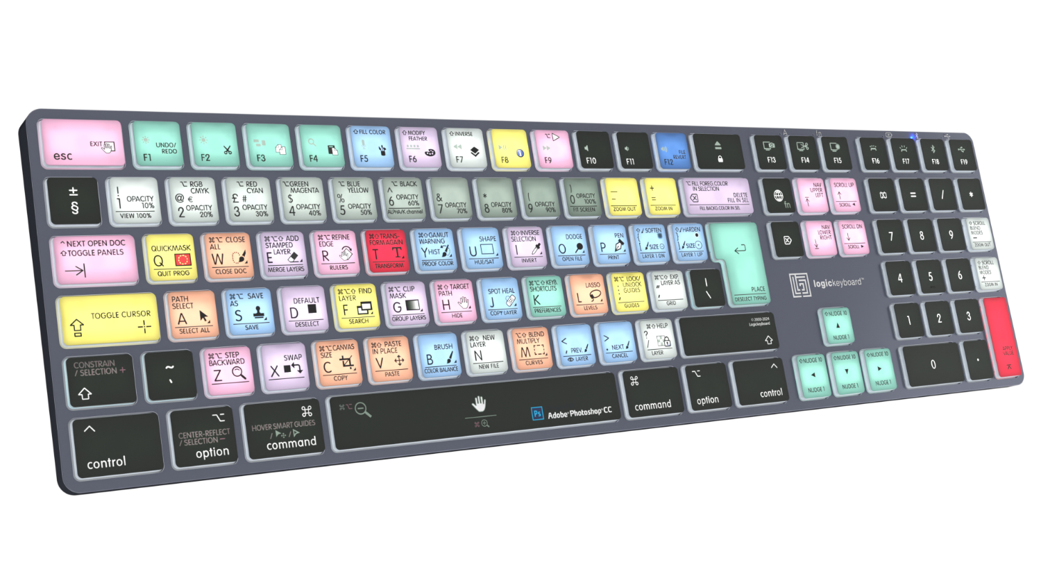 Este teclado Logickeyboard es tu mejor opción para editar en Photoshop. Gracias a los atajos de teclado indicados en las teclas y a su codificación por colores, en un abrir y cerrar de ojos te convertirás en un experto en el manejo de Photoshop. El teclado Logickeyboard es ideal para estudios de modelado 3D, entornos gráficos profesionales y todos aquellos que trabajan intensamente con Photoshop.