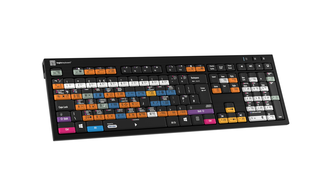 El teclado delgado Logickeyboard, diseñado para Blender. Fabricado para PC con Windows. Este teclado Logickeyboard es tu mejor opción para editar en Blender. Gracias a los atajos de teclado indicados en las teclas y a su código de colores, te convertirás en un experto en el manejo de Blender en un abrir y cerrar de ojos. El teclado Logickeyboard es ideal para estudios de modelado 3D, entornos gráficos profesionales y todos aquellos que trabajan intensamente con Blender.