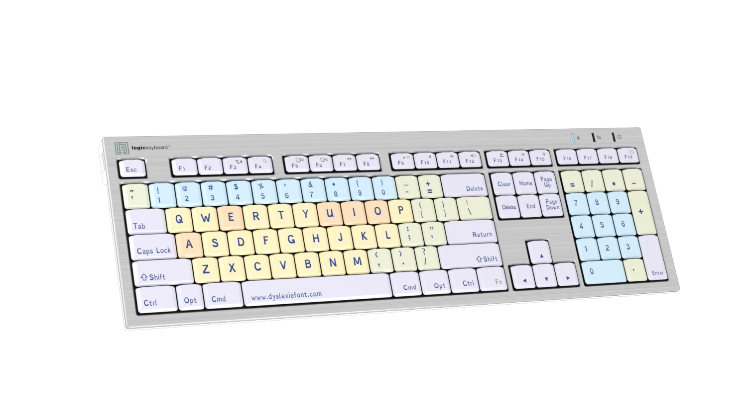 El teclado con fuente «Dyslexia» ofrece a las personas con dislexia una fuente única que les facilita la lectura, el aprendizaje y el trabajo con el ordenador.