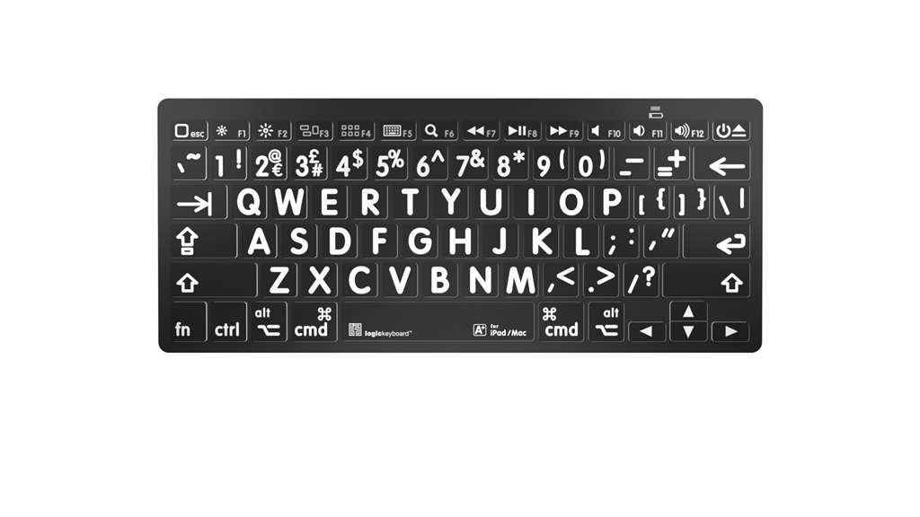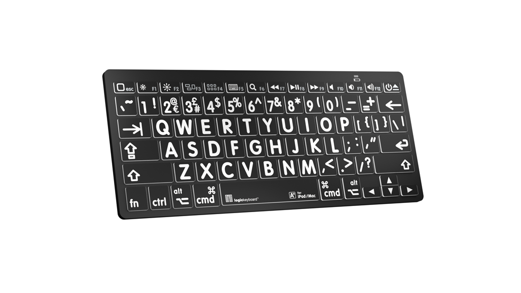 El teclado Logickeyboard Bluetooth Mini Keyboard es el primer teclado Bluetooth con letras grandes del sector, diseñado para personas con discapacidad visual y usuarios adultos de dispositivos Apple iPad, iPhone o Mac. Ahora existe una forma de escribir en un teclado real con letras que son fáciles de ver y localizar. Este teclado en miniatura es compacto y ligero, fácil de transportar, y cuenta con tecnología Bluetooth de probada eficacia que permite conectarlo a cualquier dispositivo compatible con Bluetooth.