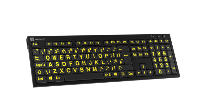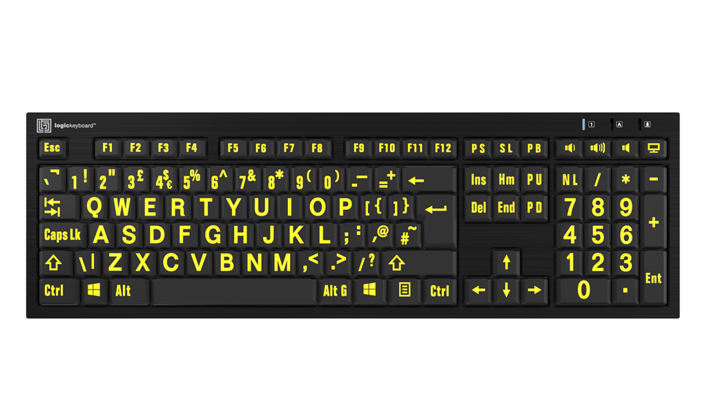 El teclado Logickeyboard LargePrint ha sido diseñado para personas con discapacidad visual o para aquellas a las que les cuesta leer las indicaciones habituales del teclado. Gracias a su impresión LargePrint, el manejo del teclado resulta mucho más sencillo y rápido.