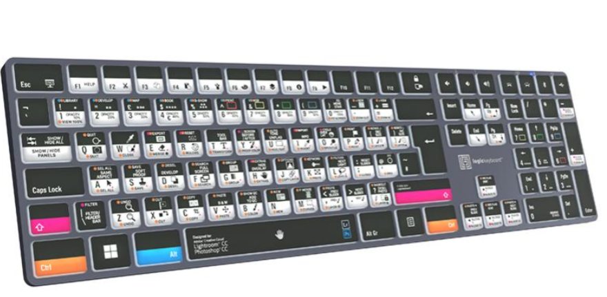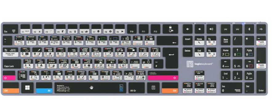 El teclado Logickeyboard Adobe Photographer PS/LR Astra 2 para PC es un potente teclado