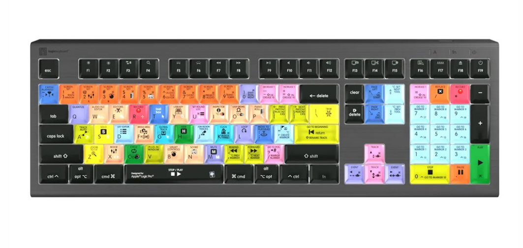 El teclado Logickeyboard Apple Logic Pro X2 Astra Mac es un teclado profesional con atajos de teclado diseñado para productores musicales y editores de sonido que utilizan Apple Logic Pro X. Las teclas retroiluminadas con colores diferenciados y el concentrador USB 3.0 integrado agilizan los flujos de trabajo y aumentan la productividad tanto en entornos con poca luz como en estudios profesionales.