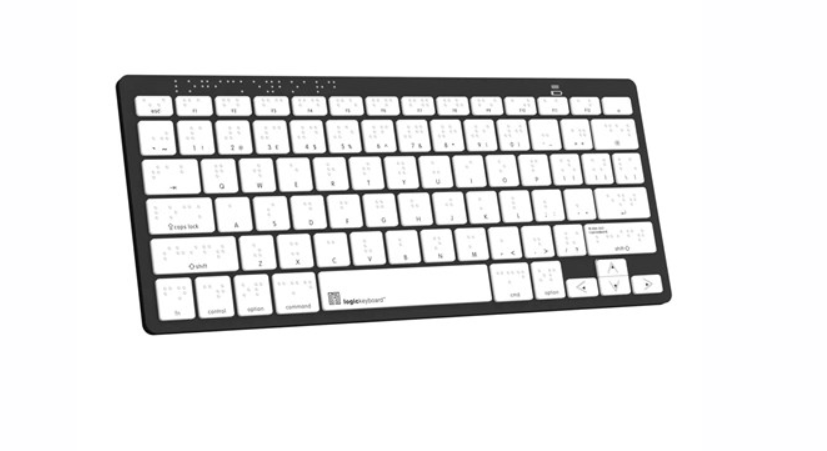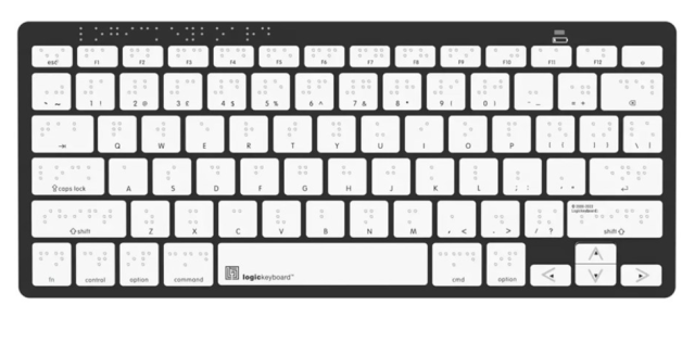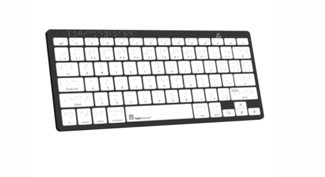 El teclado auxiliar Logickeyboard Braille Bluetooth para PC es un teclado portátil