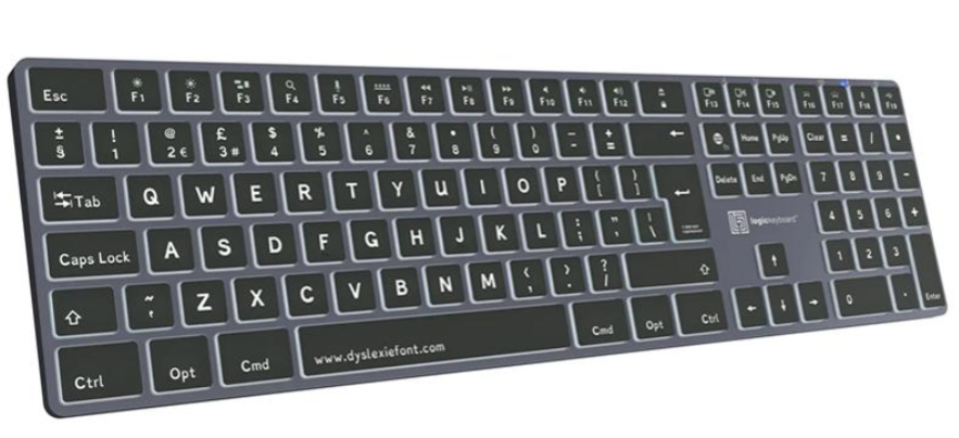 El teclado inalámbrico Logickeyboard Dyslexie Bluetooth Mac Assistive Keyboard es