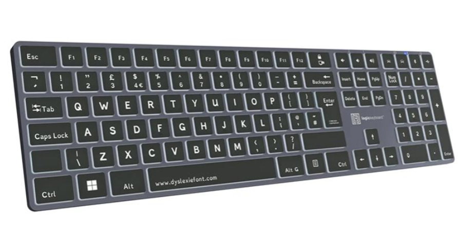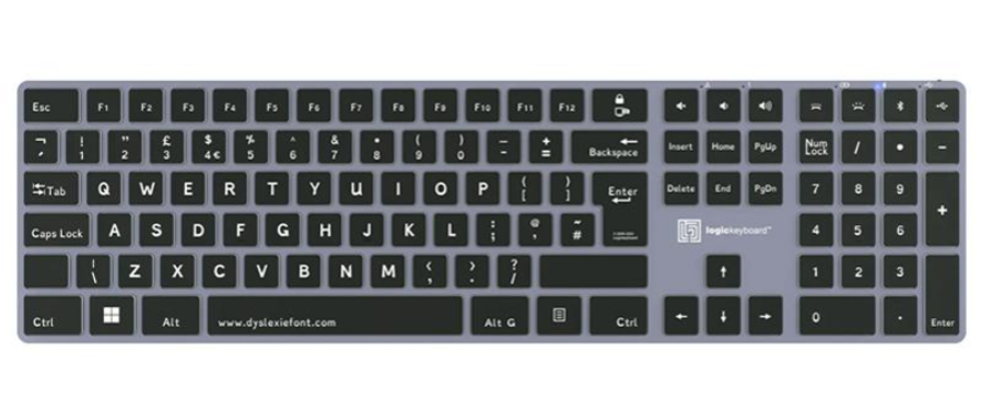 El teclado inalámbrico Logickeyboard Dyslexia Bluetooth para PC (teclado británico)