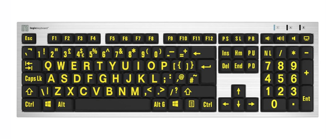 El teclado para PC Logickeyboard XLPrint Slim Line, en color negro y amarillo, es