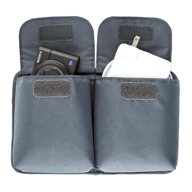 La funda cuenta con 13 ojales de compresión, 9 de los cuales están situados en un panel extraíble de doble cara, lo que permite una sujeción flexible y segura de los accesorios.