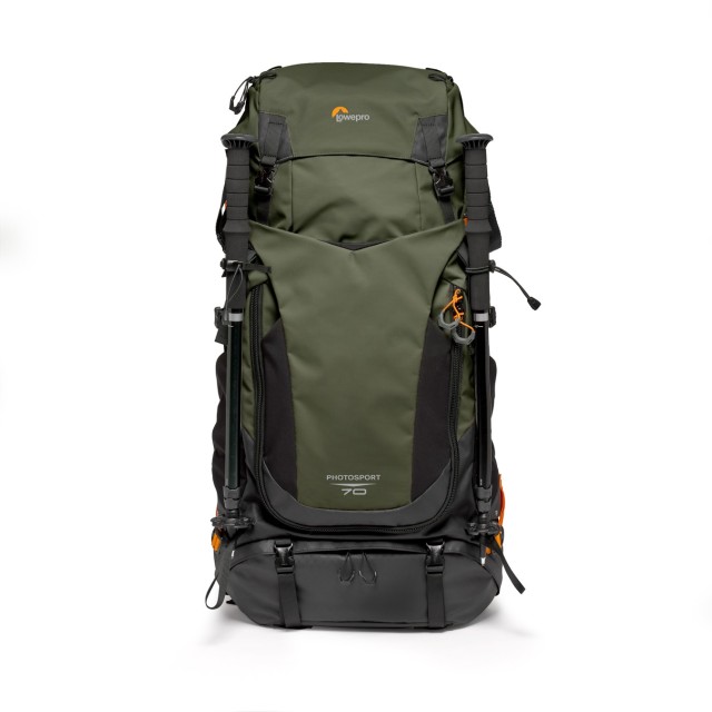 La Lowepro PhotoSport PRO 70L AW IV es una mochila fotográfica profesional diseñada para sesiones fotográficas de varios días en la naturaleza. Es ligera y está fabricada en un 86 % con material reciclado. Tiene capacidad para una cámara CSC/DSLR con un objetivo de 70–200 mm f/2,8 montado, 1–2 objetivos de repuesto y ofrece espacio para el organizador extraíble GearUp PRO XL, un sistema de hidratación y el equipo de exterior imprescindible.