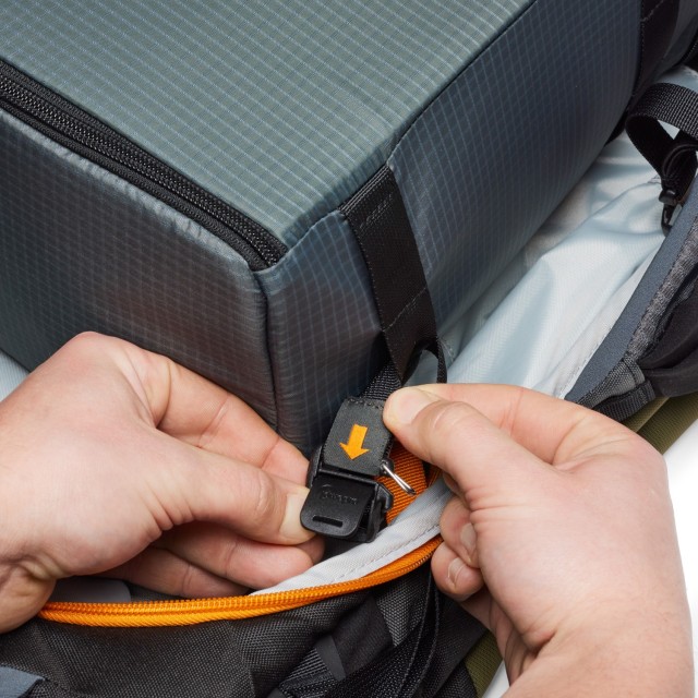 Está diseñado para funcionar a la perfección con las fundas para cámaras GearUP Pro (L, XL y XXL) y ofrece compatibilidad con un inserto suspendido extraíble para la cámara, lo que proporciona mayor protección y estabilización de tu equipo. El acceso funcional por la parte trasera permite sacar rápidamente el equipo sin quitarse la mochila, mientras que las características específicas para la escalada —como las presillas para piolets, las presillas para cuerdas y el soporte para casco— la convierten en la opción ideal para expediciones alpinas con múltiples actividades.