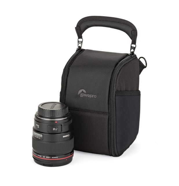 La Lowepro ProTactic LensExchange 100 AW es una funda especial para objetivos que permite a los fotógrafos cambiar rápidamente de objetivo con una sola mano. Está diseñada para objetivos zoom estándar y ultra gran angulares, tiene capacidad para dos objetivos temporalmente durante el cambio, se fija mediante el sistema SlipLock™ a mochilas o cinturones de la serie ProTactic y está equipada con una correa para el hombro desmontable y una funda All Weather Cover™ para un uso versátil en cualquier condición meteorológica.