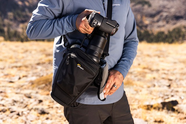 Presentamos la bolsa ProTactic TLZ 75 Pro AW III, diseñada para fotógrafos profesionales que cubren eventos y otros encargos durante todo el día, principalmente al aire libre. Esta bolsa está dimensionada para un cuerpo de formato completo con empuñadura vertical y un objetivo acoplado de hasta 70-200 f/2,8 sin telescopio. La bolsa cuenta con una extensión para colocar el parasol del objetivo en posición de disparo y la puerta se abre hacia un lado para facilitar el acceso a la empuñadura. La hebilla de cierre rápido permite un acceso rápido o una seguridad adicional, mientras que el separador interior mantiene la cámara cerca de la parte superior para facilitar su extracción o divide la bolsa para un juego de dos objetivos.