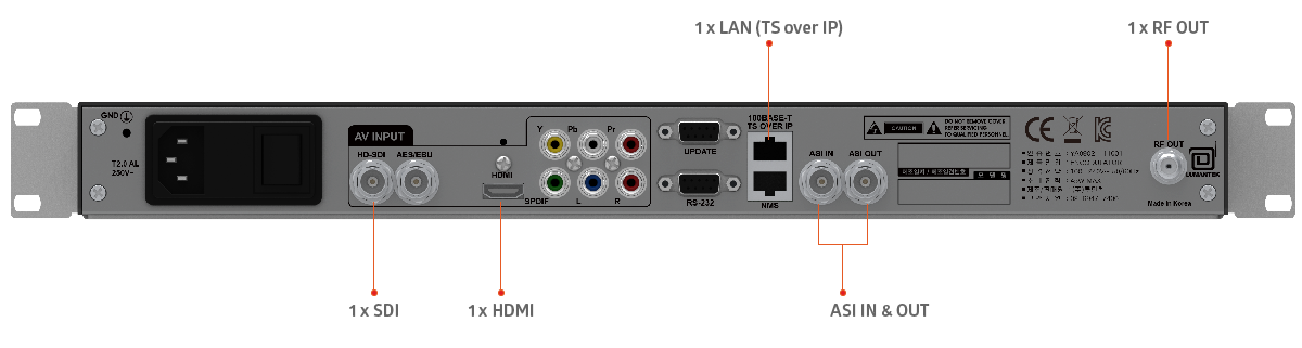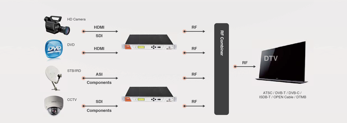El codificador HD está integrado con moduladores de TDT (DVB-T, DVB-C, QAM-B, ATSC, DTMB)
