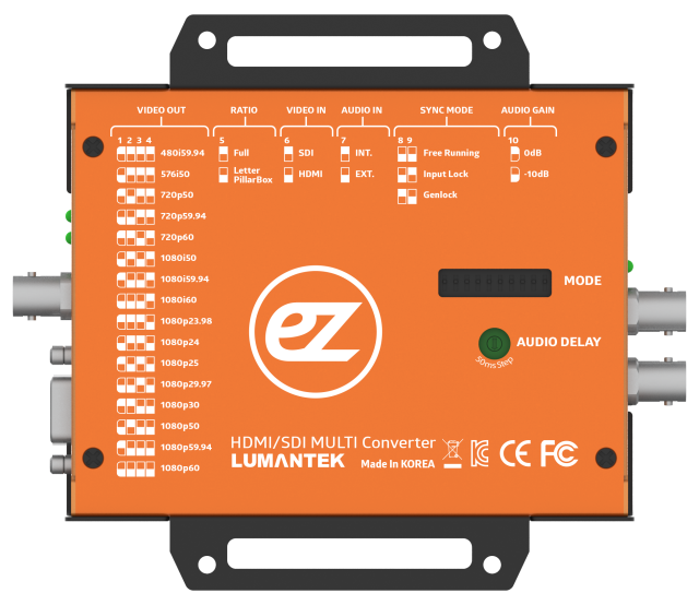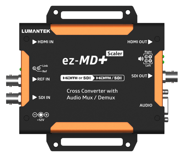 El Ez-MD+ de LUMANTEK es un convertidor cruzado compacto de HDMI a SDI o de SDI a HDMI. El sistema genlock permite sincronizar las señales para conectar señales de salida no emparejadas. Admite audio simétrico XLR con control de retardo de audio.