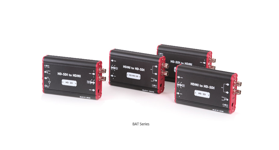 Los convertidores BAT ofrecen una señal de alta calidad con el menor jitter posible. Disfruta de un largo alcance de señal SDI con bajo nivel de ruido. Hay cuatro modelos de convertidores BAT disponibles, entre los que puedes elegir según tus necesidades.