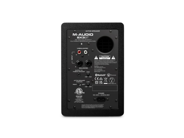 Monitores de estudio, 100 W, 3,5/1", selector L/R, Bluetooth. Los M-Audio BX3 BT son monitores de estudio que ofrecen un sonido de referencia a un precio excelente. El woofer de carbono de 3,5" y el tweeter de 1" integrados garantizan una escucha perfecta y son ideales tanto para la producción y escucha en estudio como para el uso multimedia habitual. Ofrecen conexión inalámbrica por Bluetooth, la posibilidad de seleccionar el lado izquierdo/derecho y una potencia de 100 W, lo que convierte a los BX3 en una opción clara tanto para aficionados como para profesionales.