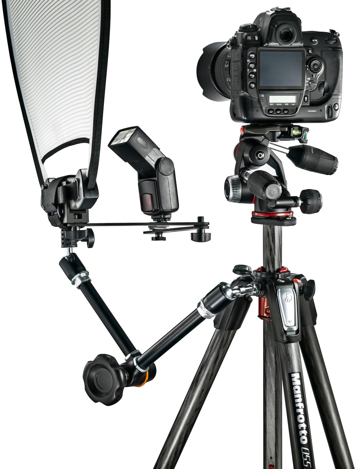 No tienes que preocuparte por desmontar la cámara, ya que el tubo se puede extender incluso sin el equipo acoplado. Ábrelo con una sola mano y un solo movimiento, y ajusta cada pata a un ángulo preestablecido para componer y fotografiar con mayor precisión. El trípode de carbono 055 de 3 secciones cuenta con un innovador nivel de burbuja que gira libremente alrededor del poste central, lo que te permite colocar la cámara de forma que nada obstaculice la vista. Conecta una luz LED, un flash, un reflector u otros accesorios de vídeo mediante el conector Easy Link, que se puede fijar al brazo extensible o al soporte. Convierte tu trípode en un estudio móvil versátil y práctico.