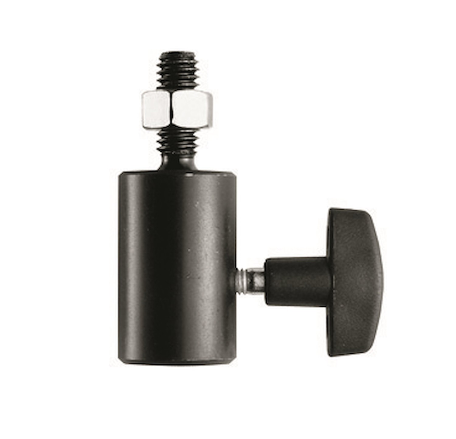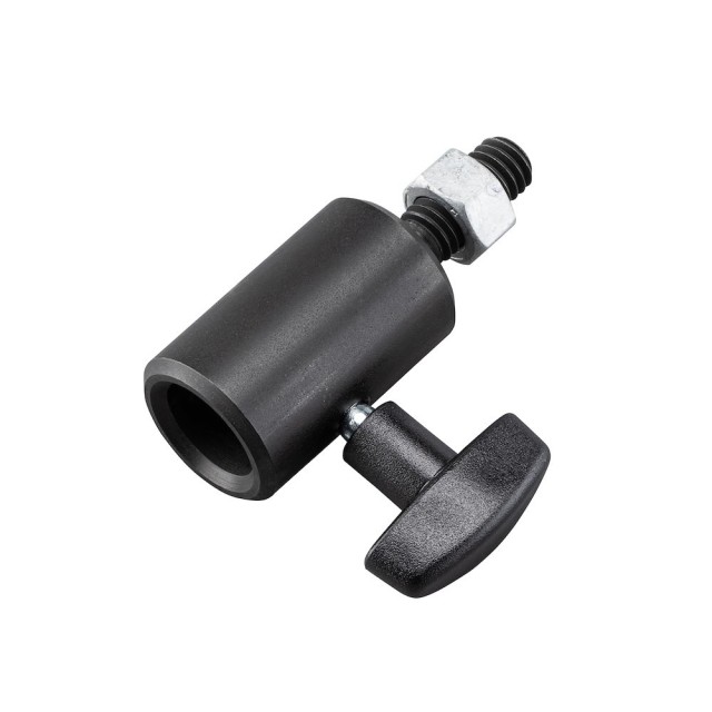El Manfrotto 014BIM Rapidapter es un adaptador de aluminio de 90 g con una rosca hembra de 16 mm (5/8") y una rosca de 3/8"-16 (altura 62,5 mm), que permite conectar pequeños receptores en trípodes o abrazaderas a una rosca de 3/8" y garantiza una fijación rápida y segura de rótulas, brazos o pequeños accesorios en el estudio o en el lugar de instalación.