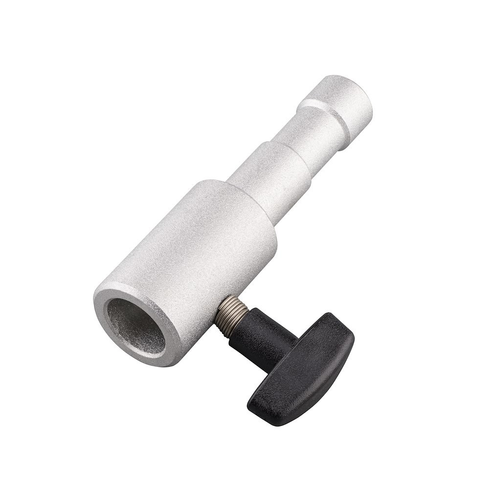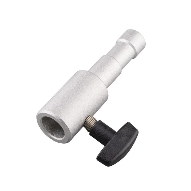 El adaptador Manfrotto 153 Mole Richardson convierte un tornillo de 5/8'' en una rosca hembra de 16 mm y ofrece una conexión segura y versátil para equipos de iluminación y fijación. Con una longitud de 8,8 cm, está diseñado para una conexión rápida y fiable.