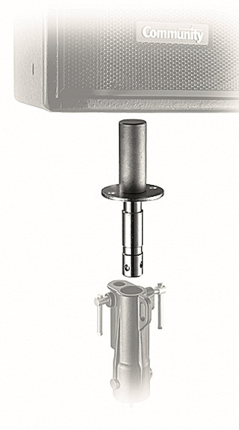 El adaptador para altavoces Manfrotto 618 es un robusto adaptador con rosca interior y exterior de 28 mm que permite fijar de forma segura altavoces PA, monitores de estudio o equipos pesados a cualquier soporte de iluminación con un casquillo superior de 28 mm, con una capacidad de carga de hasta 25 kg en una carcasa de acero que pesa 0,7 kg.