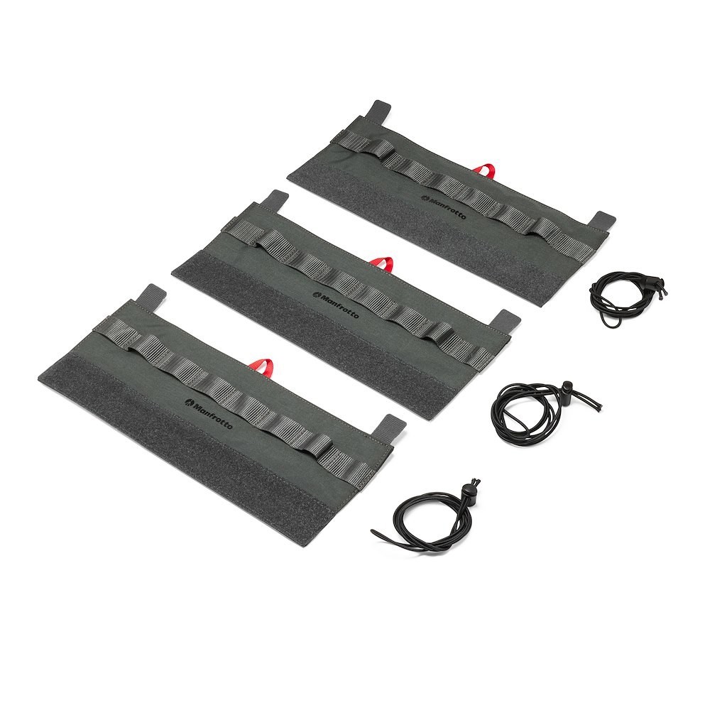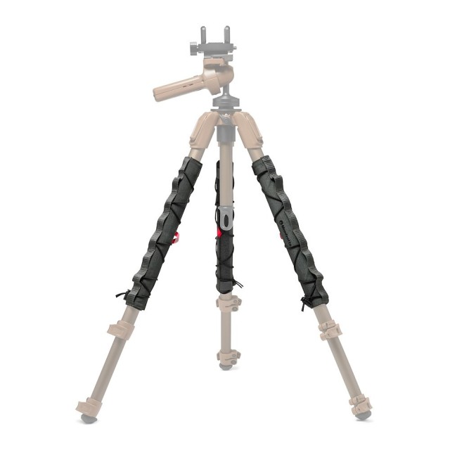 El Manfrotto MB RO LW ALPHA S.H.O.T. Tripod Leg Wrap es un juego de tres fundas para las patas de nylon repelentes al agua, de color gris oscuro, diseñadas para fotógrafos deportivos y cazadores que utilizan trípodes o monopiés Manfrotto con un diámetro de tubo de hasta 30 mm. Proporcionan aislamiento contra el frío del metal en invierno, protegen las patas de los arañazos en terrenos difíciles y están equipadas con varias presillas para cordones donde colgar guantes, silbatos, fundas de latón u otros accesorios pequeños: una mejora táctica ideal para el tiro en el campo.