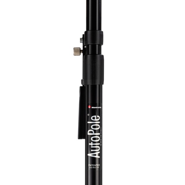 Fija con seguridad tu equipo de iluminación y soporte con el trípode negro Manfrotto Autopole de 1,0–1,7 m (077B). Este trípode versátil ofrece una solución fiable y ajustable para estudios y rodajes en exteriores, y proporciona una base estable para diversos accesorios dentro de su rango de extensión.