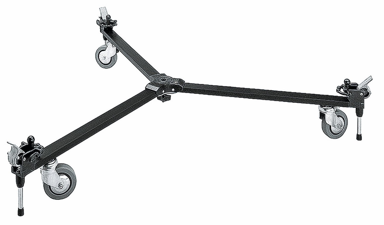 El Manfrotto 127 Basic Dolly convierte la mayoría de los trípodes ligeros y de peso medio en una plataforma móvil sin necesidad de complicados raíles. Su robusta estructura de aluminio está equipada con tres ruedas de 76 mm de suave rodadura con frenos individuales para un seguimiento preciso en línea recta o en curvas, mientras que el innovador pedal Sure-Lock eleva todas las ruedas a la vez, lo que permite que el trípode se apoye de forma segura sobre patas de goma independientes para obtener tomas perfectamente estables y fijas. Con un peso de tan solo 3,15 kg y una capacidad de carga de 10 kg, ofrece el equilibrio ideal entre portabilidad y fiabilidad.