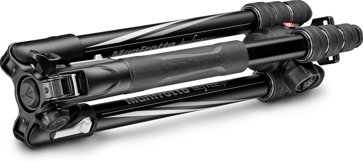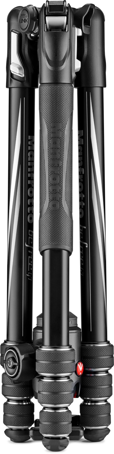 Trípode Befree GT de aluminio con cierre giratorio y rótula El trípode Manfrotto Befree GT Travel, en color negro, ofrece una capacidad de carga de hasta 12 kg con un peso de tan solo 1,85 kg, lo que lo convierte en el compañero de viaje ideal para fotógrafos profesionales con cámaras DSLR o sin espejo. Este trípode está fabricado en una resistente aleación de aluminio y alcanza una altura máxima de 164 cm con el tubo central extendido y de 140 cm con el tubo retraído. Para facilitar su almacenamiento, el trípode se pliega hasta una longitud de 43 cm y se puede transportar cómodamente en la bolsa acolchada incluida.