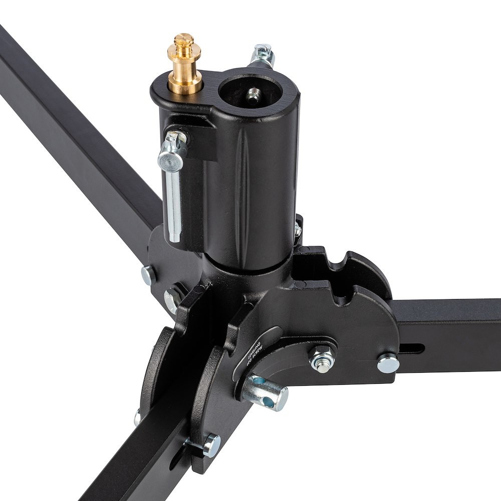 La Manfrotto 297BBASE Black Large Brake Base es una base de estudio resistente con ruedas con freno y pata de nivelación, diseñada para ofrecer la máxima estabilidad a equipos de iluminación y soporte de hasta 40 kg. Con una altura mínima y máxima de 28 cm, esta base ofrece un centro de gravedad bajo y estable, ideal para configuraciones de estudio exigentes.