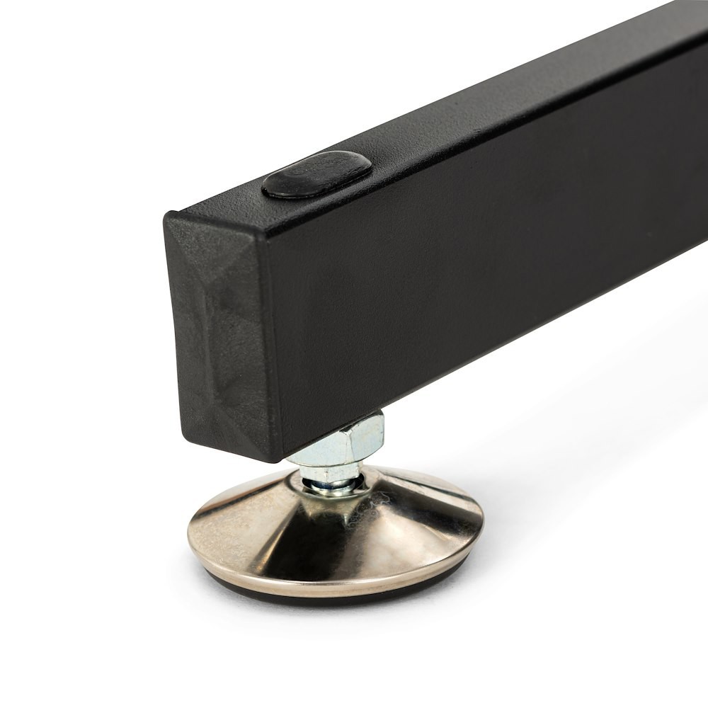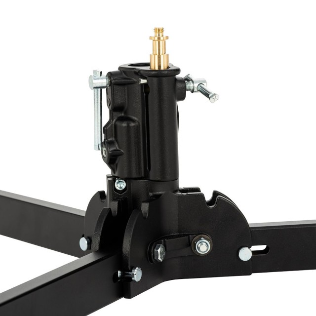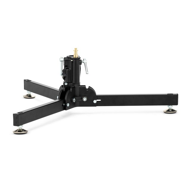 El Manfrotto 299FBASE convierte cualquier poste de 35 mm de un trípode en C en un soporte compacto para iluminación trasera. La estructura de acero negro con recubrimiento en polvo cuenta con tres patas rectangulares (20×40 mm) que se pliegan hasta 36 cm para su almacenamiento, mientras que una pata niveladora se ajusta ±15° para suelos irregulares. El casquillo universal de 28 mm es compatible con los pivotes estándar y el pivote pequeño de 16 mm incluido permite el montaje directo de accesorios. Con una capacidad de carga de 40 kg, es la base ideal para pequeños LED, pequeños reflectores Fresnel o brazos de pértiga en estudios de cine, vídeo o fotografía; en combinación con las ruedas, garantiza una movilidad inmediata.
