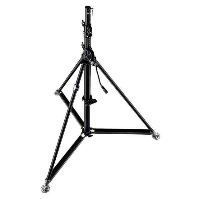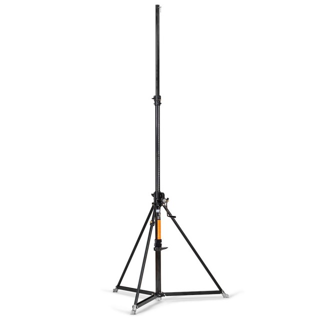 El Manfrotto 387XBU Black Stainless Steel Super Wind Up Stand es un soporte de iluminación profesional y resistente, diseñado para ofrecer la máxima estabilidad y alcance. Gracias a su columna dentada, sus dos extensiones de altura de acero cromado y su capacidad de carga máxima de 80 kg, se puede extender hasta 366 cm y cuenta con certificación de seguridad TÜV.