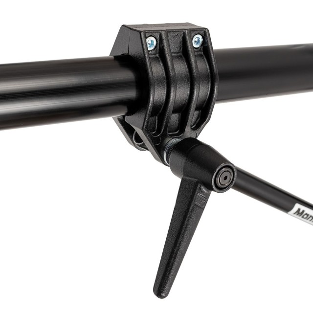 La abrazadera Manfrotto 124 fija de forma segura el brazo 3085 Boom Arm a trípodes