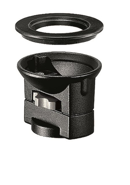 El adaptador Manfrotto 325N Bowl Adapter es un convertidor de aluminio que pesa 440 g y permite acoplar cualquier cabezal de vídeo de 75 mm o 100 mm a un trípode de base plana mediante una rosca interna de 3/8"-16. Garantiza una alineación rápida y firme de los cabezales fluidos en trípodes fotográficos o de iluminación.