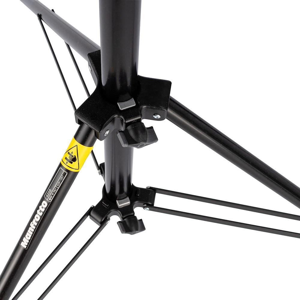 El trípode Manfrotto Combi-Boom Stand es un trípode convertible de aluminio negro ultraligero (2,76 kg) que, con un solo clic, pasa de ser un trípode ligero de 3,9 m (con una capacidad de carga de 9 kg) a un trípode con brazo extensible de 191 cm de altura, ideal para iluminar el cabello, fotografía de productos y pequeños estudios.