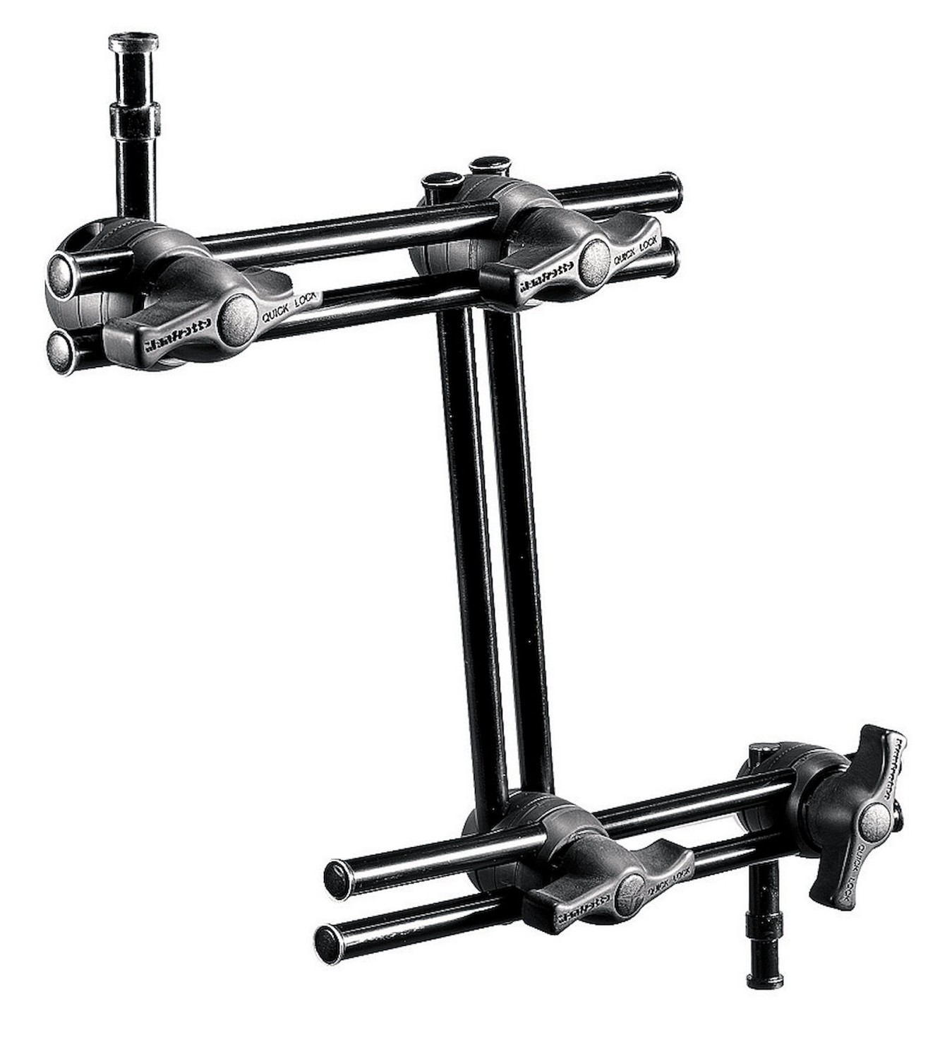 El Manfrotto 396AB-3 es un robusto brazo articulado doble de tres secciones fabricado en aluminio negro (alcance máximo de 860 mm, capacidad de carga de 4,5 kg, peso de 790 g) con palancas de fijación rápida, sección central extensible, pivote inferior hexagonal/universal de 16 mm (compatible con Super Clamp) y pivote superior de 5/8" + rosca interior…