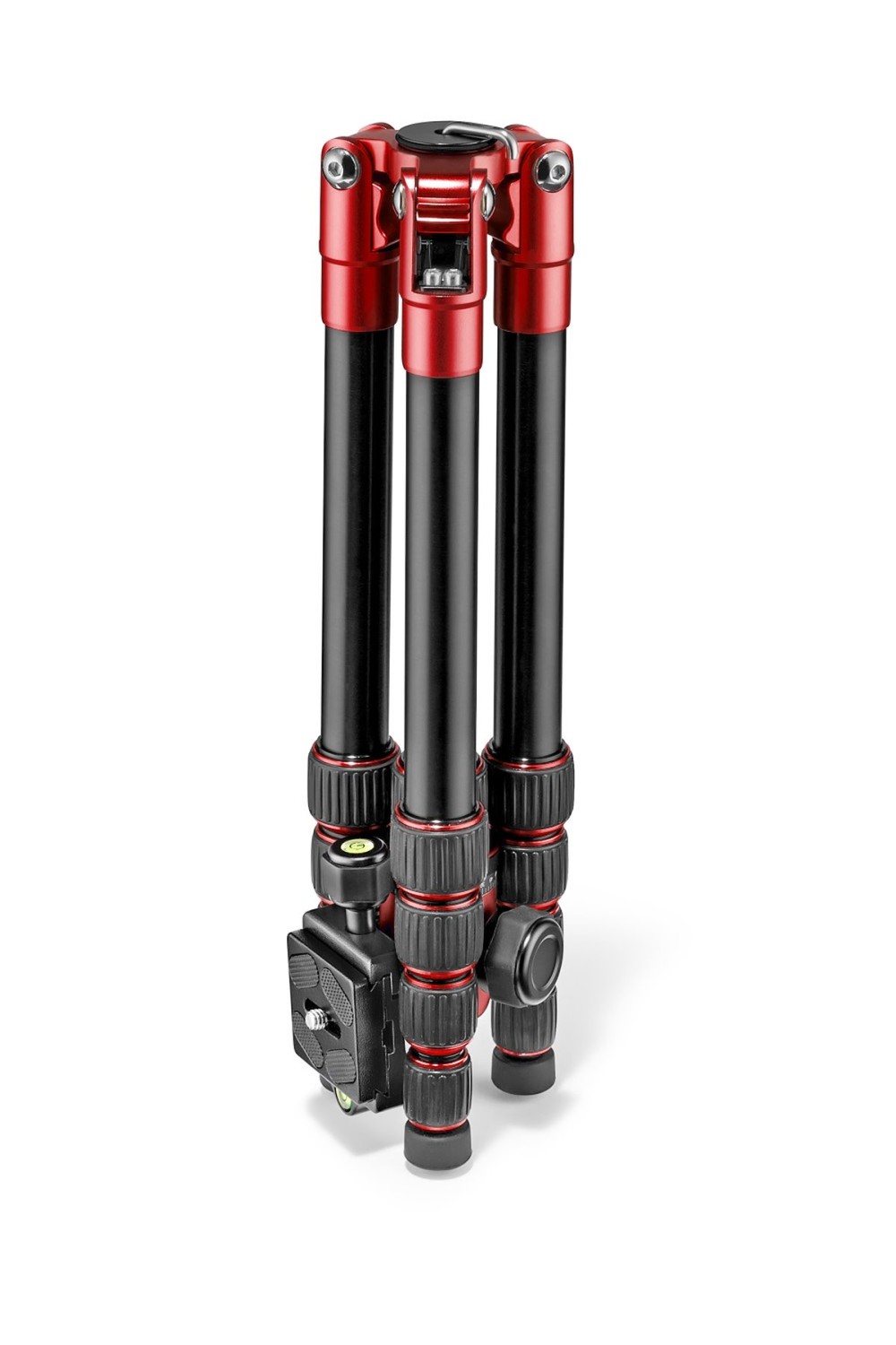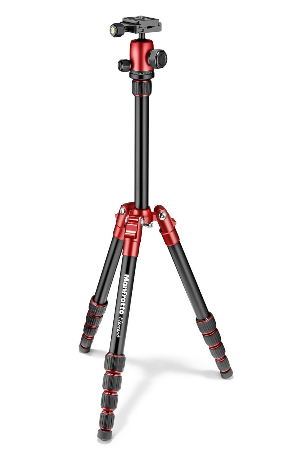 El Manfrotto MKELES5RD-BH Element Traveller Small Red es un trípode de viaje de aluminio de 1,15 kg que se pliega hasta 32 cm, alcanza una altura de 143 cm (127,5 cm sin el tubo central) y soporta equipos CSC de hasta 4 kg con una rótula esférica tipo Arca de movimiento suave, bloqueo de giro de 360°, patas con cierre giratorio, tres ángulos de patas, columna telescópica y bolsa acolchada; ofrece un estilo llamativo en rojo y gran estabilidad.