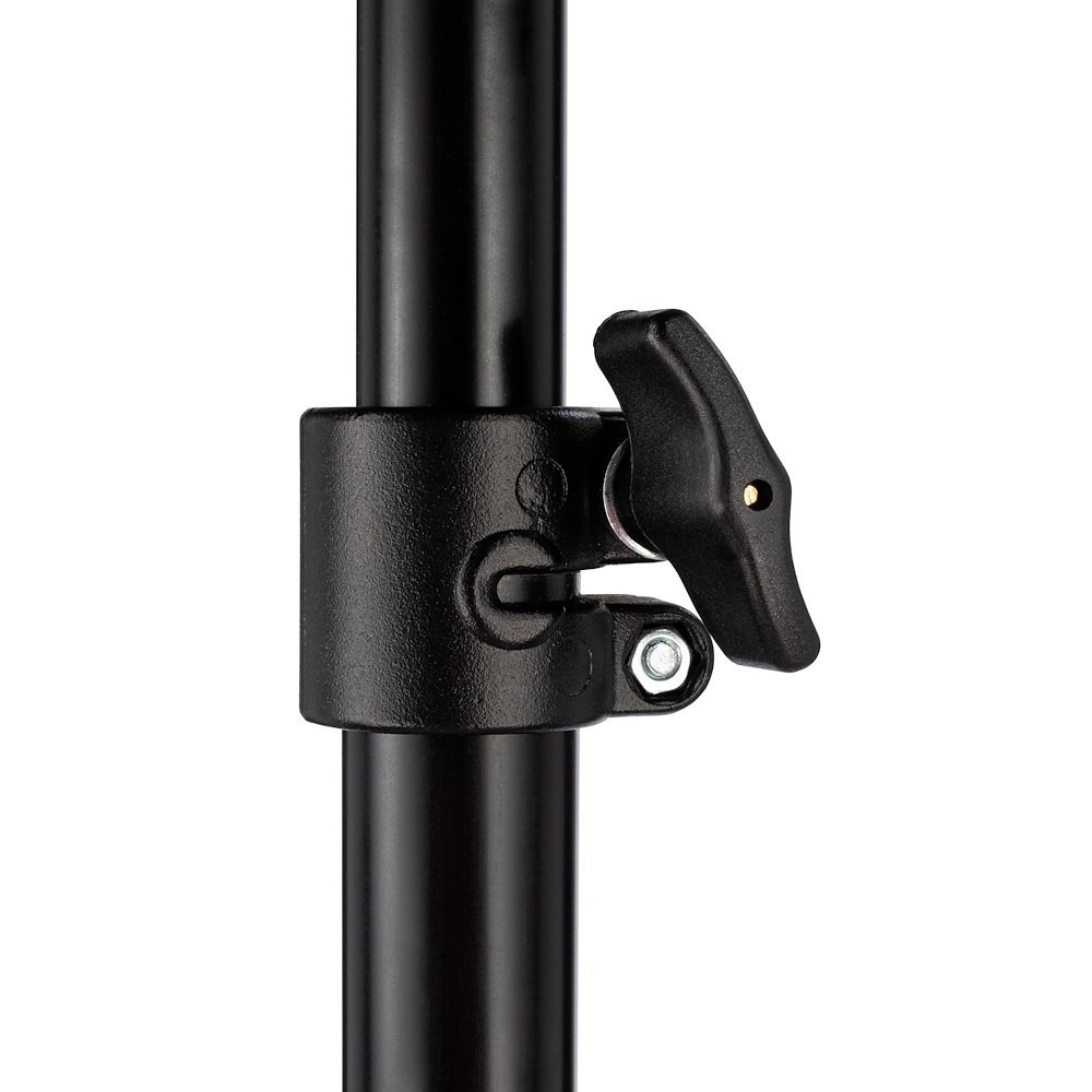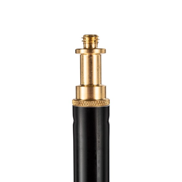 La barra de extensión Manfrotto 099B se inserta en cualquier rosca de 5/8" y se fija mediante un anillo giratorio para alcanzar una altura total de 235 cm. Las tres secciones de aluminio se despliegan fácilmente gracias a las empuñaduras ergonómicas de goma, mientras que el recubrimiento en polvo negro resiste los arañazos y los reflejos. El tornillo macho de 3/8"-16 de la parte superior es compatible con soportes estándar, lo que lo hace ideal para iluminar el cabello, realizar fotografías de productos desde arriba o utilizarlo como brazo. Con un peso de tan solo 600 g y una longitud de 90 cm cuando está plegado, es la solución perfecta para elevar equipos pequeños y medianos sin necesidad de un soporte completo, ideal para estudios de retratos, estudios de vídeo o sets de localización.
