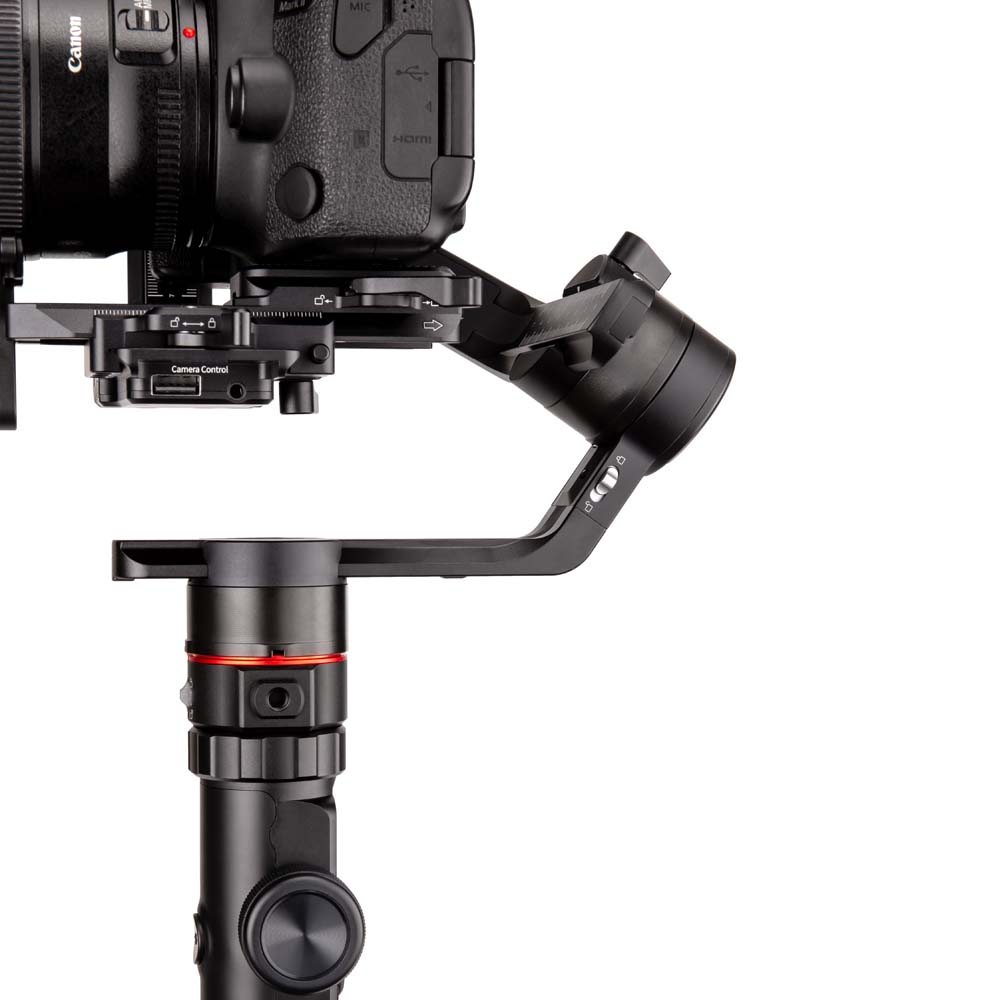 Para eliminar las vibraciones no deseadas, el motor cuenta con bloqueos para cada eje. Además, está equipado con un sistema único de instalación rápida y sencilla, diseñado en base a una estructura secundaria y compatible con los estándares Manfrotto y ARCA Swiss Type. Puedes retirar e instalar la cámara rápidamente sin necesidad de volver a alinearla.