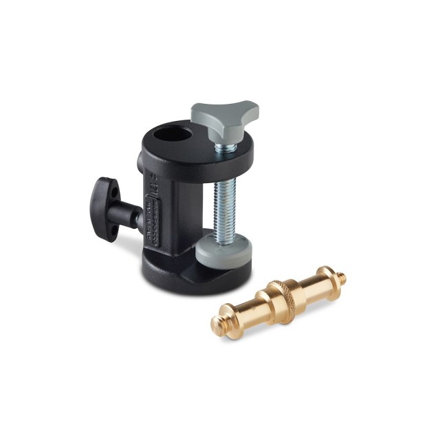 La Manfrotto 2941 Mini Clamp es una abrazadera compacta y resistente diseñada para fijarse de forma segura a tubos redondos de hasta 1-1/8" de diámetro, y cuenta con un pasador reversible para un montaje versátil.