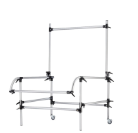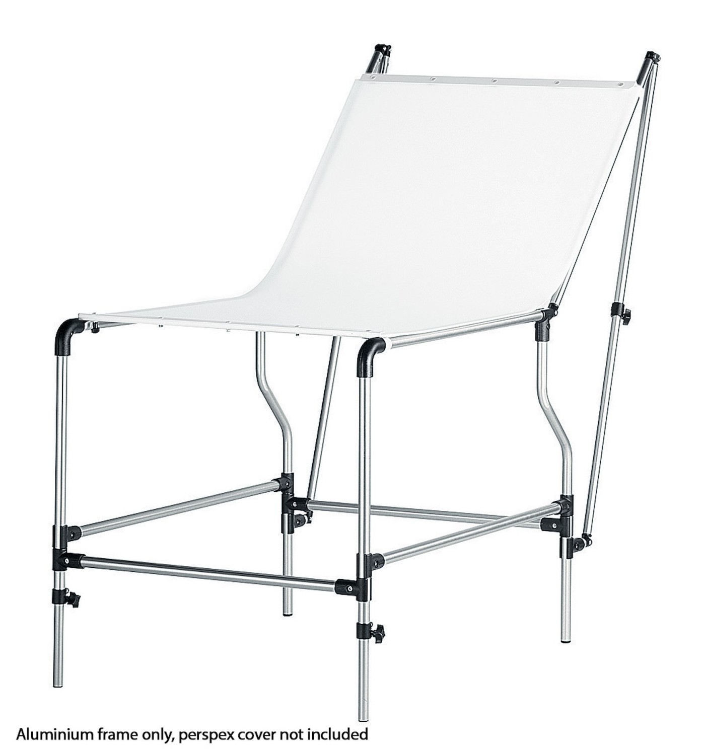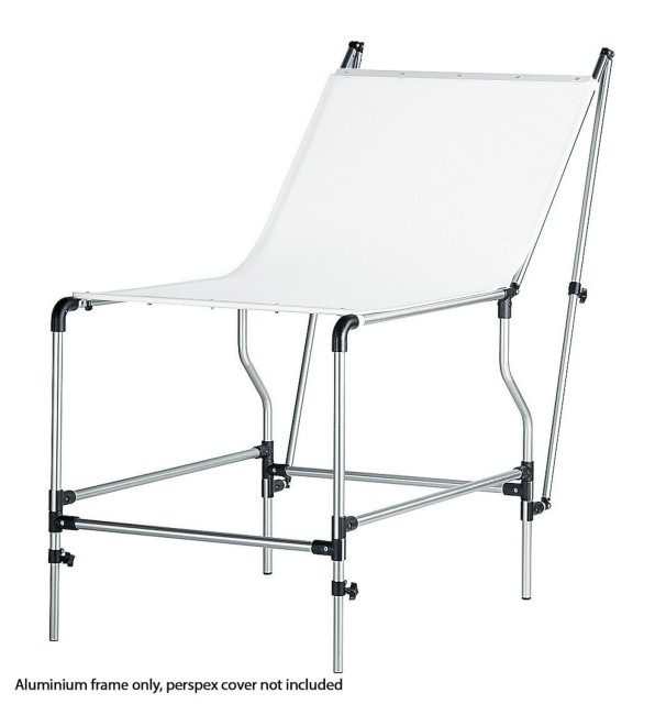 La mesa está fabricada en acero cromado, lo que garantiza una larga vida útil y un soporte fiable. Está equipada con un panel trasero abatible ajustable y patas delanteras regulables, lo que permite a los fotógrafos ajustar con precisión los ángulos y la iluminación para lograr transiciones suaves del fondo y reflejos controlados.