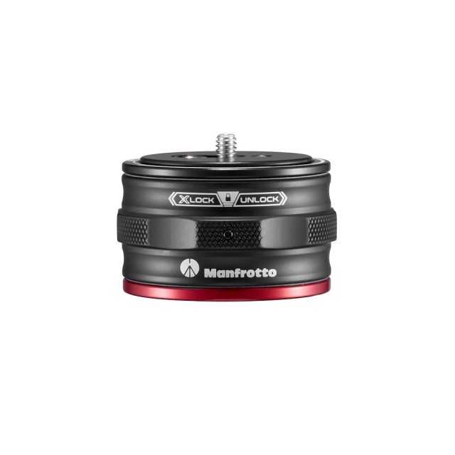 MOVE es el primer sistema de fijación rápida que te ayuda a acelerar el ritmo de rodaje y facilita los cambios de equipo. Está diseñado para reducir los tiempos de inactividad al cambiar de fijación entre trípodes, sliders, estabilizadores y otros dispositivos. El núcleo de este revolucionario sistema es una base plana y una placa que crean una conexión universal. La base tiene un diámetro de 60 mm y una rosca estándar de 3/8" para conectarse a sliders, trípodes, monopiés y otros dispositivos. La placa está equipada con roscas estándar de 3/8" y 1/4" (macho), que permiten fijar fácilmente una gran variedad de productos. También cuenta con un pasador antirrotación para trabajar con seguridad en todas las configuraciones. Al añadir la base a diversos dispositivos (trípode, slider, monopié, etc.), podrás cambiar fácilmente la posición de la cámara en cuestión de segundos sin necesidad de interrumpir la toma ni realizar complicados montajes. MOVE está fabricado en aluminio anodizado y mecanizado, por lo que es lo suficientemente resistente como para soportar una impresionante capacidad de carga de hasta 20 kg. Con su diseño delgado y un peso de 220 g / 0,49 lb, es también el sistema de fijación rápida más ligero del mercado. El nuevo sistema X LOCK de Manfrotto aumenta la rigidez de todo el conjunto en el punto de montaje mediante un intuitivo mecanismo de bloqueo giratorio.
